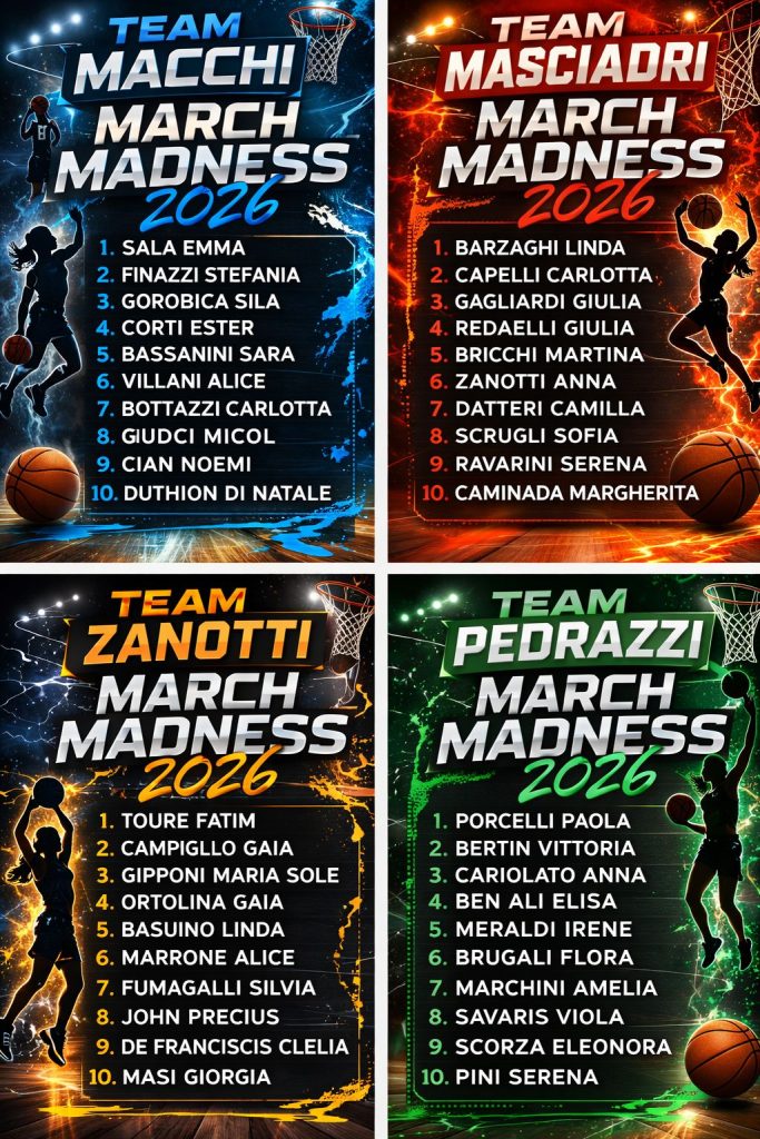 Per tutta la giornata di oggi 4 panterine prenderanno parte alla March Madness che avrà luogo a Cologno al Serio. Questa manifestazione sancisce di fatto la chiusura del percorso dell’annata 2011 a livello lombardo.