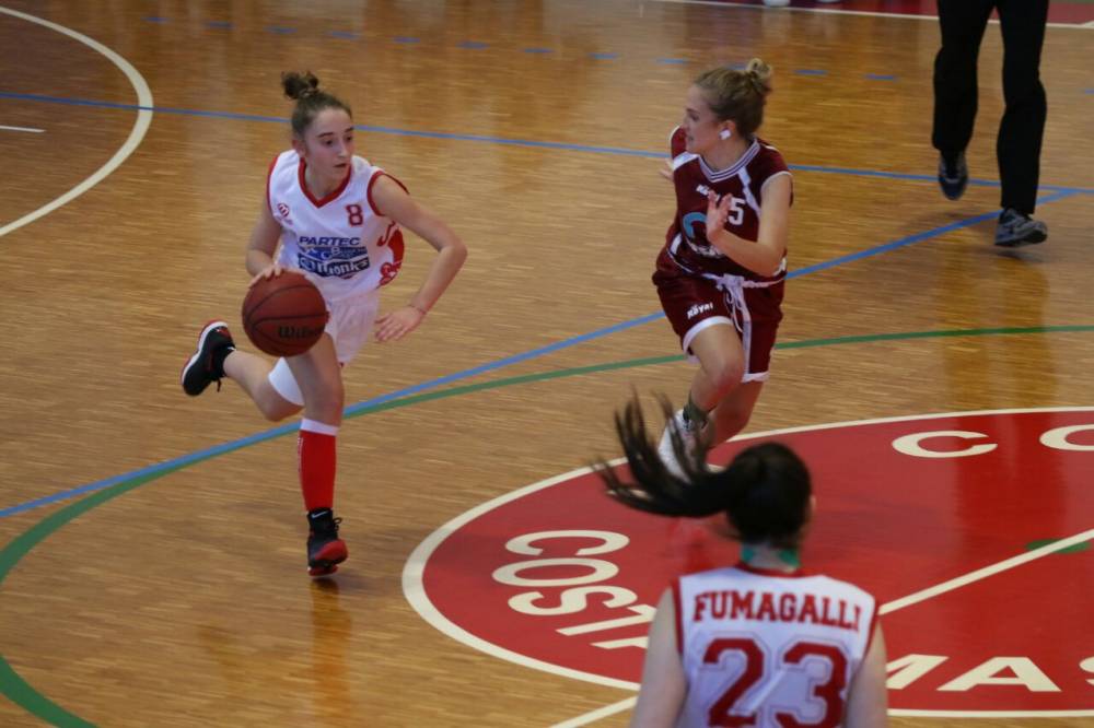 Alterniamo le giocatrici in campo con l´obbiettivo di fare entrare tutte in partita il prima possibile e soprattutto di innescare qualche contropiede col gioco in velocità. Sofy piazza una tripla ad inizio frazione che ci rimette in ritmo. Poi la premiata ditta Rock e Benny costruisce un parziale di 9 punti che finalmente ci rimette il pallino del gioco in mano. Ritorniamo in vantaggio e la tripla di Lady G ,ad effetto e di tabella , sembra il segnale della fuga. Ma Tradate ,alternando penetrazioni e tiri dalla lunga distanza, ci riaggancia. All´intervallo parità 27-27 e tutto da rifare.
